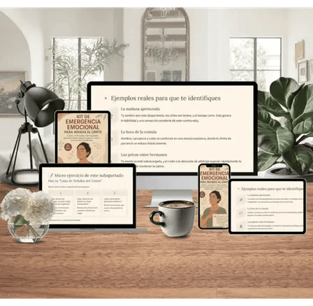 Ya no tienes que elegir entre gritar o sufrir en silencio. Este Kit de Emergencia te enseña a recuperar la calma en 5 minutos, incluso en los días más caóticos.